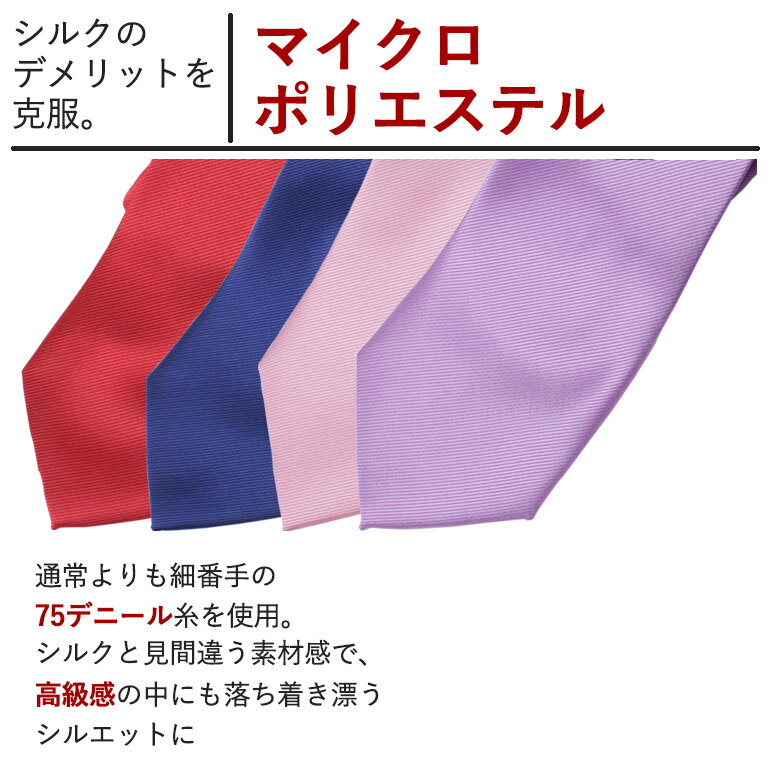 75Dマイクロポリエステル製ポケットチーフ&ネクタイセットポリエステル100%生地と聞くと、安っぽくペラペラな生地を思い浮かべてしまうものです。