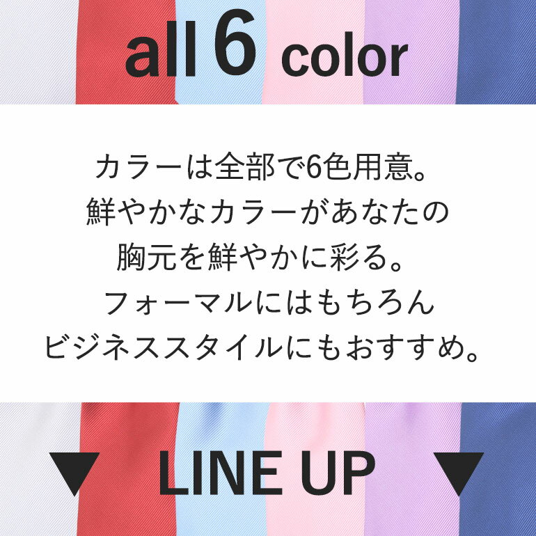 カラーはタイとチーフそれぞれ同じ6カラー。