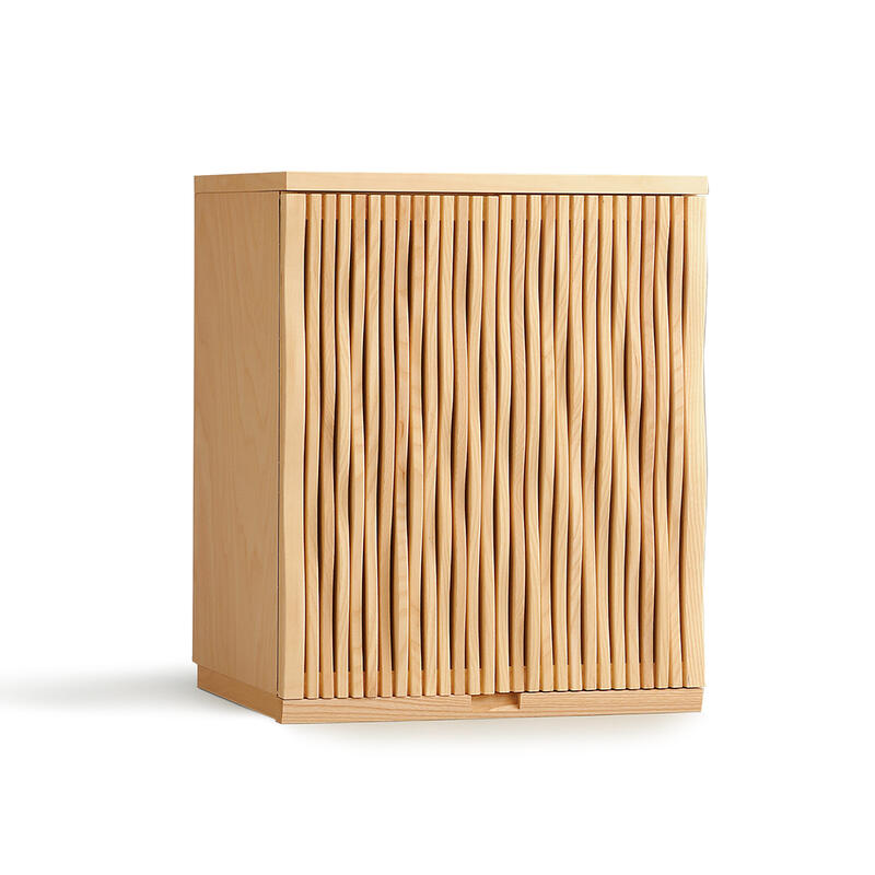 ホワイトアッシュ(タモ)材の良さを活かした格子の扉が人気です。