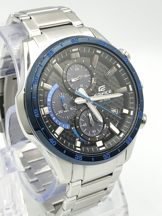 品番EQS-900DB-2A 駆動方式ソーラー 素材:ケースステンレススチール 素材:ベルトステンレススチール(ピン式) 風防無機ガラス 文字盤カラーカーボンブラック ベルトカラーシルバー サイズ(縦×横×厚)約51.5×47.6×12mm 重さ約156g 仕様・ブルーIP(ベゼル部) ・日常生活用強化防水(10気圧) ・タフソーラー(ソーラー充電システム) ・ストップウォッチ(1秒、スプリット付き) ・バッテリーインジケーター表示 ・日付表示 ・24時間表示 ・スクリューバック ・精度:平均月差±20秒 ・フル充電時からソーラー発電無しの状態での駆動時間 機能使用の場合:約5ヵ月 付属品取扱説明書兼保証書(英字) EDIFICEオリジナルボックス 当店一年間保証