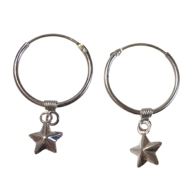 シルバーピアス 星 スター 立体的 シンプル エスニック シルバー925 silver925 シルバーアクセサリー フープピアス